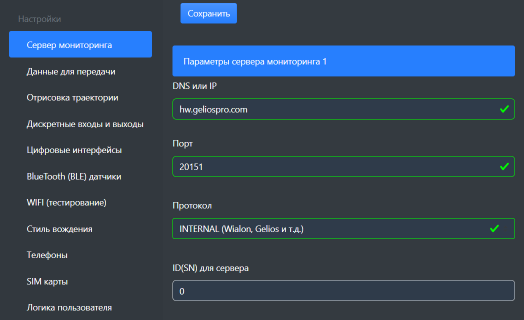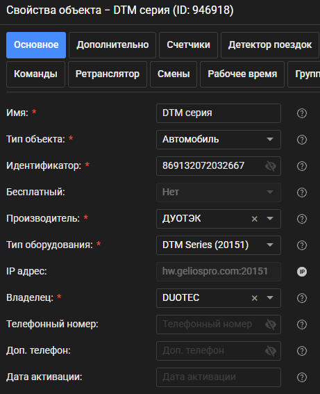 Для заведения устройств DTM серии в системе мониторинга Gelios потребуется заполнить следующие поля: