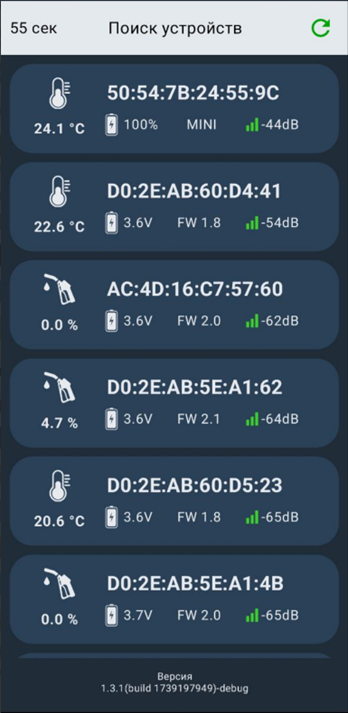 На главном экране отобразится список BLE-устройств Arnavi в радиусе действия.