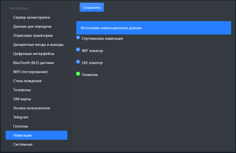 В источниках навигационных данных включите «Геометка»